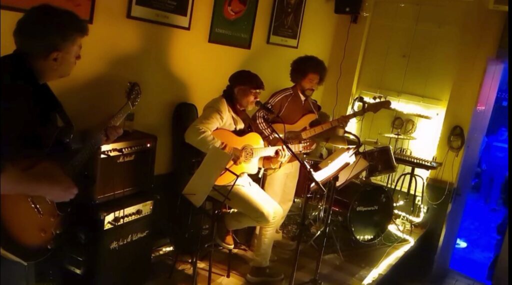Gambona, o quarto instrumentista, natural da cidade de Rio Grande-RS, tem mais de 40 anos de carreira musical. Começou nos anos 70 a se apresentar com bandas de rock e blues, passou por vários projetos e estilos musicais e acompanhou diversos artistas, participando de festivais de blues no Brasil, Uruguay e Chile. Nos anos 90 esteve tocando na California (EUA) e em seguida em Portugal e Espanha, tocando com artistas locais. Em 1998 se mudou para Porto Alegre-RS, onde reside até hoje. Possui 6 cds e um DVD lançados: GAMBONA (2001), VIDA BLUES (2009), BOURBON BLUES (2011), LONGE DE QUALQUER LUGAR (2014), ambos de blues/rock, e 2 instrumentais: VENTOS DE SUL (2019) e VENTOS DO SUL 2 (2022), DVD “BOURBON BLUES AO VIVO” (2013). Possui dois Prêmios Açorianos de Música como melhor instrumentista, e atualmente faz parte do duo de violão instrumental WOOD & STEEL DUO, com um cd lançado em 2022, com releituras próprias e originais de clássicos do blues, rock & jazz. www.gambona.com.br