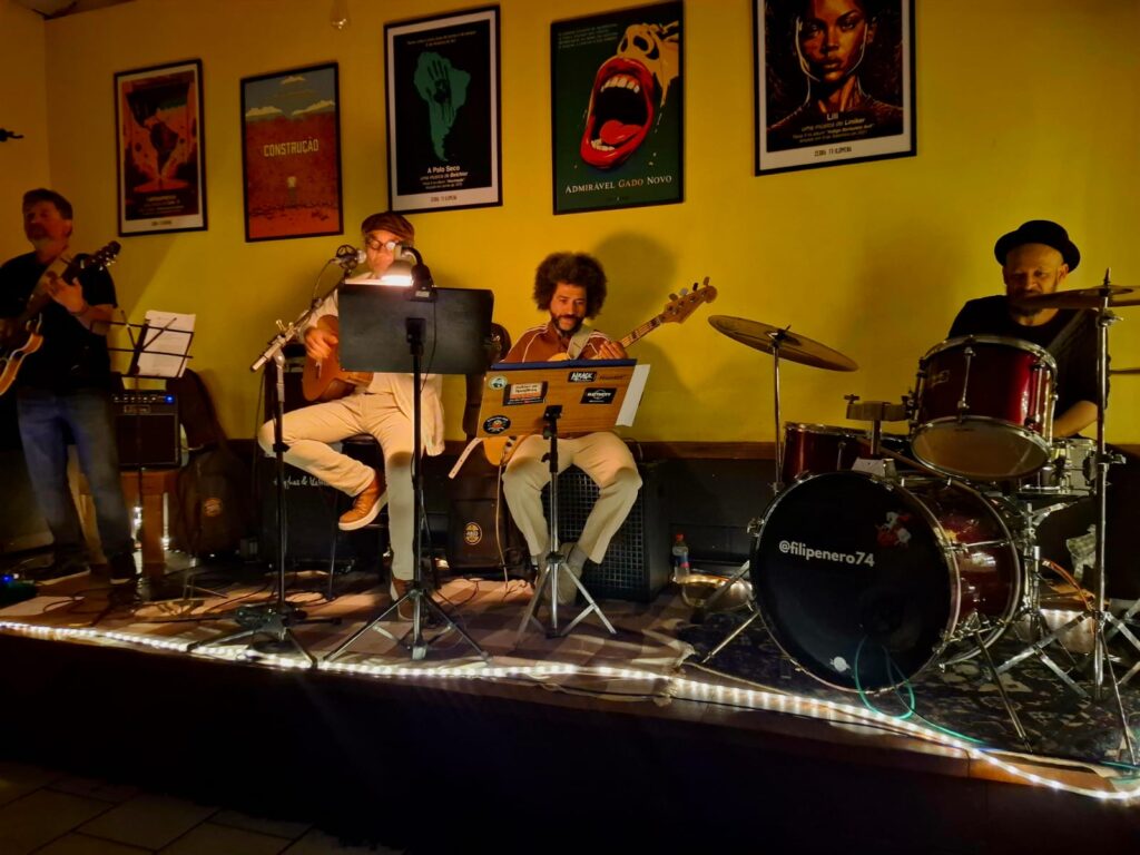 No contrabaixo, Ricardo Isquierdo sustenta os alicerces harmônicos e melódicos da banda. Com formação sólida e uma vivência musical que transita entre o samba, o groove e o instrumental brasileiro, seu som e o mesmo instrumental brasileiro, seu som é o mesmo tempo discreto e indispensável – costurando as nuances do trio com musicalidade e identidade.